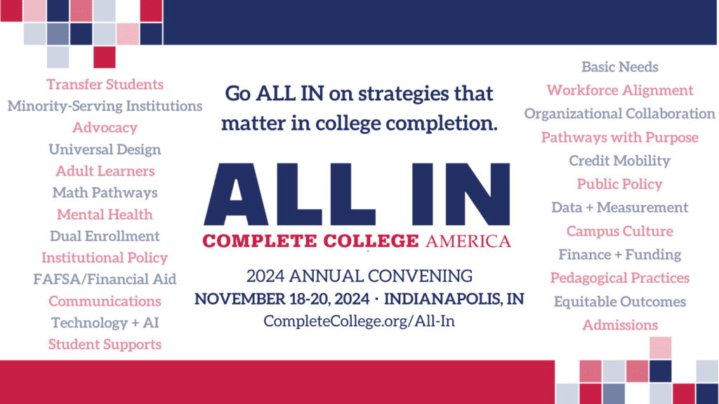 Complete College America is excited to release the initial lineup of sessions for All In: The 2024 CCA Annual Convening.
