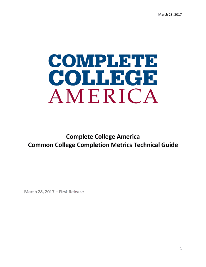 Technical Guide describing concepts, data elements and definitions for the Common College Completion Metrics adopted by CCA and the National Governors Association.