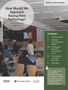 This module will provide you with practical insights and best practices to help you navigate this complex landscape, put together an effective procurement team and intentional procurement process, and ultimately support your institution’s efforts to find technology solutions that are aligned to your needs and mission.